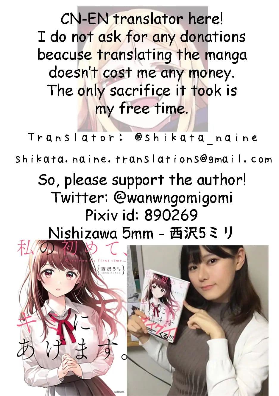 Watashi no Hajimete, Kimi ni Agemasu